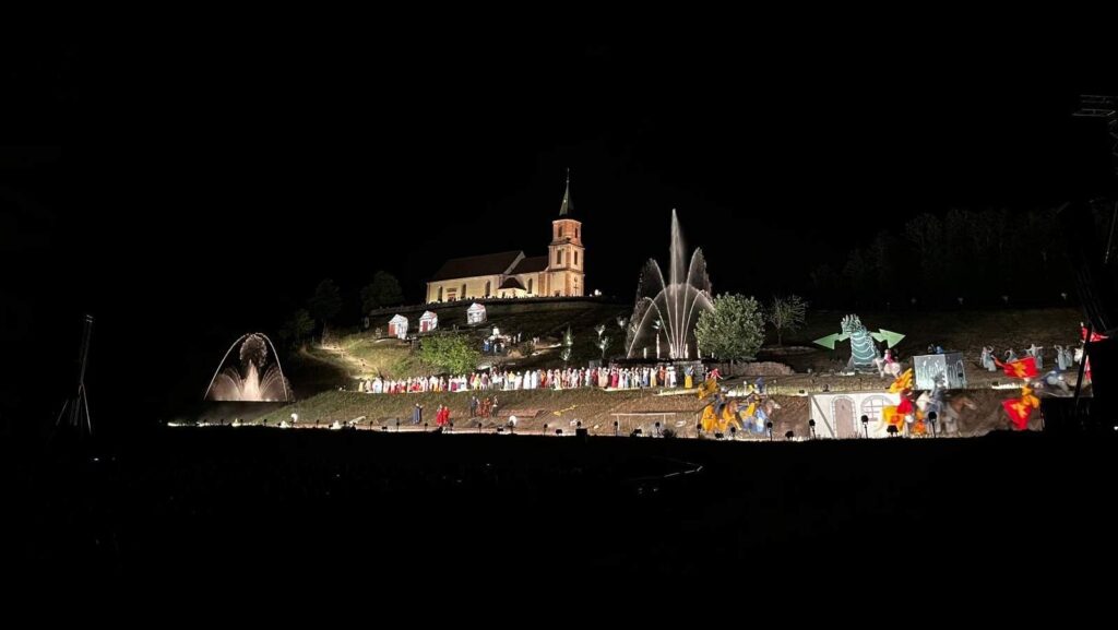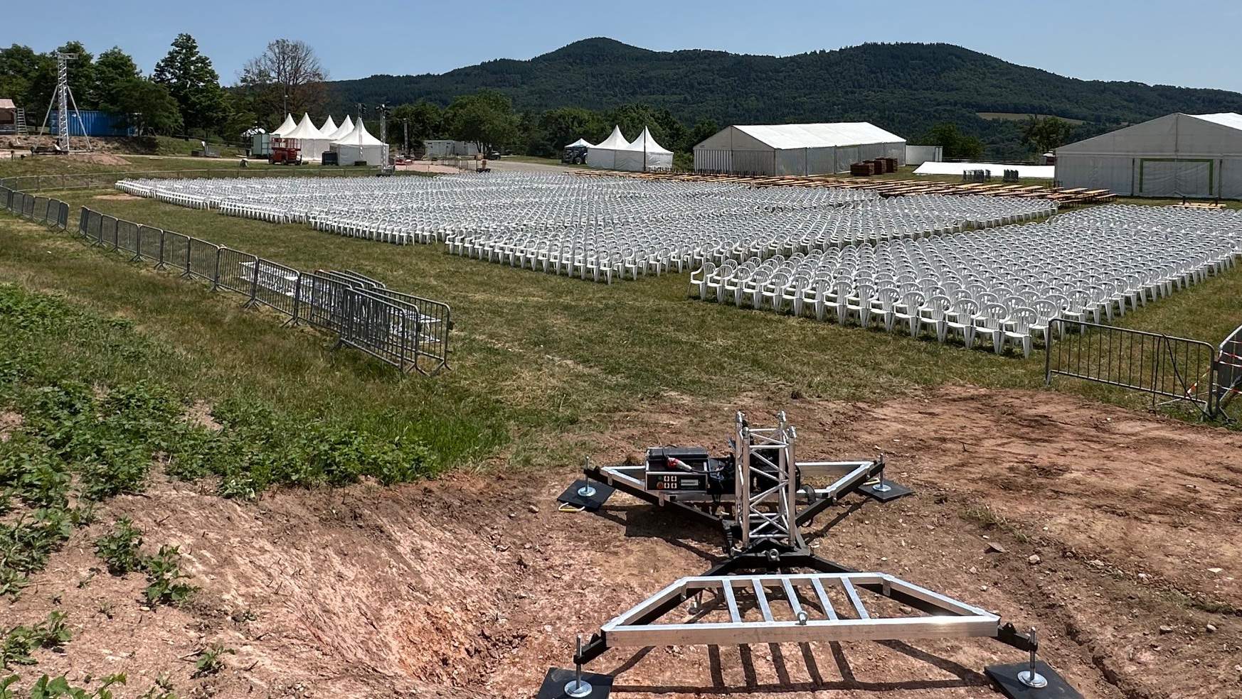 Le spectacle en plein air des Nuits de Saint-Gilles accueille chaque année près de 12 000 spectateurs lors de plusieurs soirées organisées au mois de juin et de juillet. Les producteurs et organisateurs exploitent l’intégralité de la colline pour y créer un spectacle grandiose, parfaitement intégré à l’échelle du site.Historiquement, l’installation reposait sur de vastes structures d’échafaudage. Ces dispositifs techniques occupaient une place importante dans le champ visuel et nécessitaient des moyens logistiques et humains conséquents : équipes de monteurs, techniciens son, transports multiples… Des contraintes qui alourdissaient significativement le budget global.